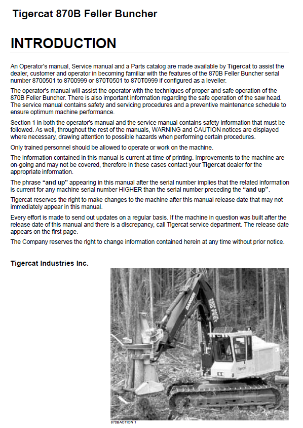 Download Complete Service Manual For Tigercat 870B Feller Buncher | Serial No. (8700501-8700999)