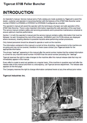 TIGERCAT 870B FELLER BUNCHER SERVICE MANUAL (8700501-8700999) - PDF FILE DOWNLOAD