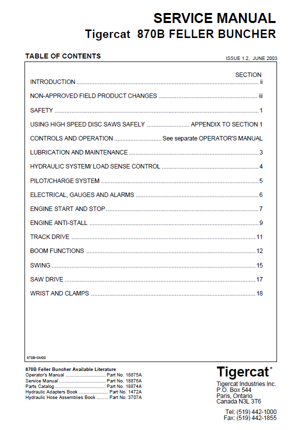 TIGERCAT 870B BUNCHER SERVICE MANUAL