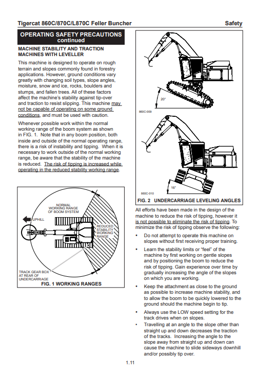 Download Complete Operator/User Manual PDF For Tigercat 870C Feller Buncher | Serial No. (87011501-87013500, 87012101-87012499)