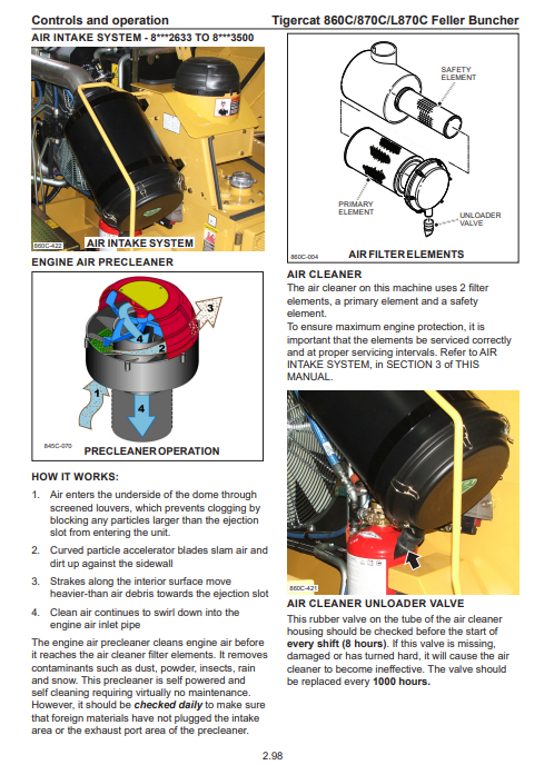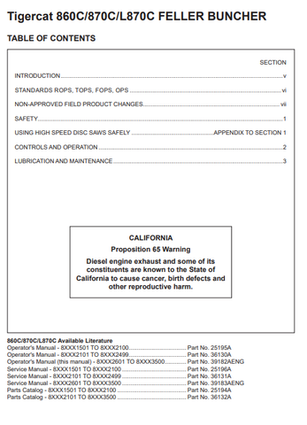Tigercat 870C Feller Buncher Operator/User Manual (87011501-87013500, 87012601-87013500) - PDF File Download