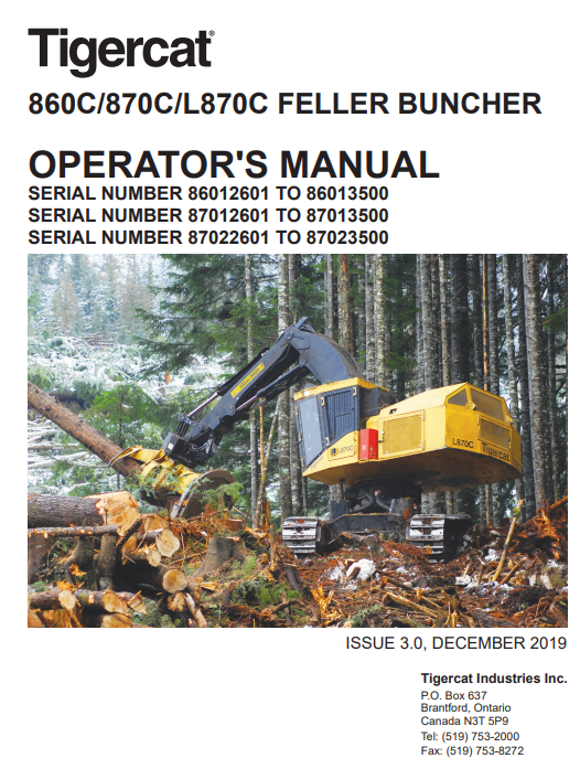 Download Complete Operator/User Manual PDF For Tigercat 870C Feller Buncher | Serial No. (87011501-87013500, 87012601-87013500)