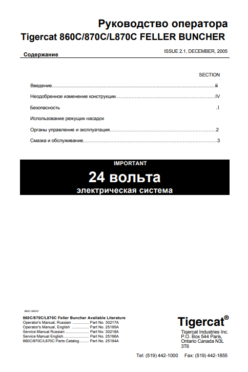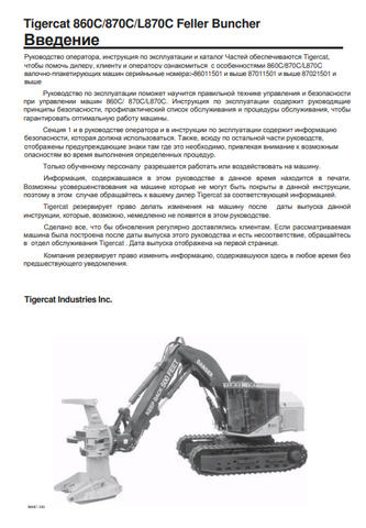 Download Complete Operator/User Manual PDF For Tigercat 870C Feller Buncher | Serial No. (87011501-87013500, 87011501-87012100) - Russian