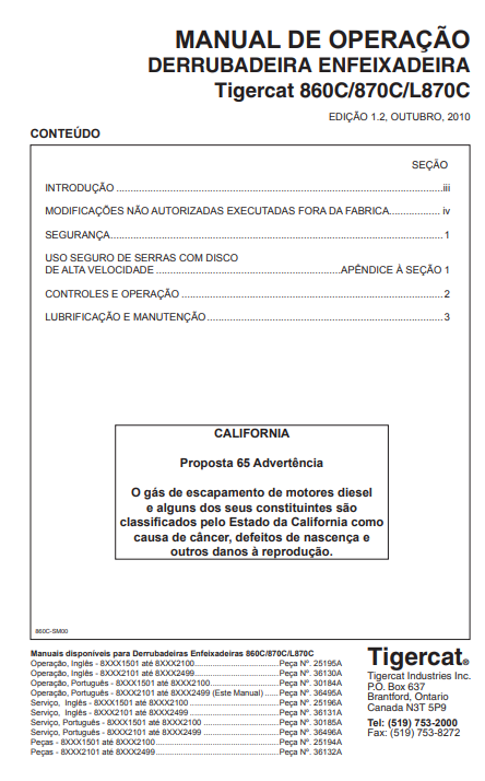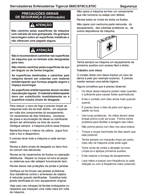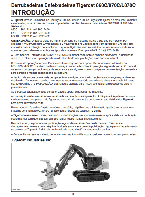 Download Complete Operator/User Manual PDF For Tigercat 870C Feller Buncher | Serial No. (87011501-87013500, 87012101-87012499) - Portuguese