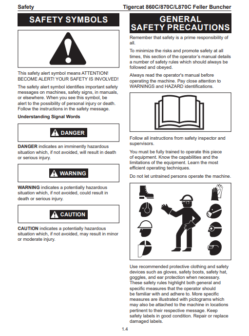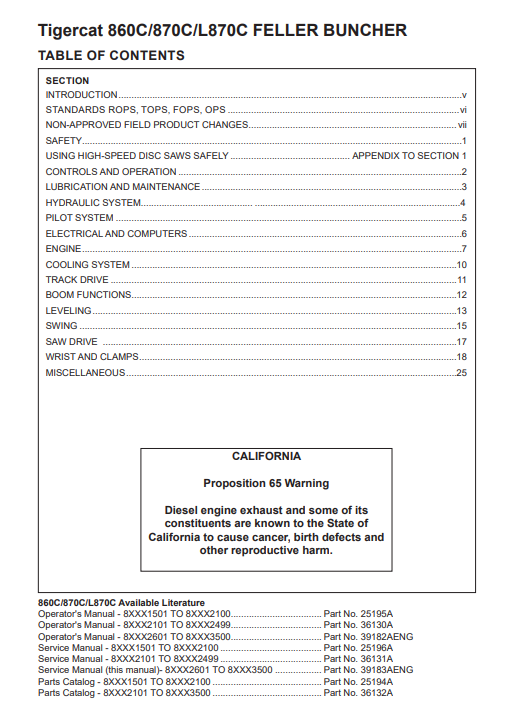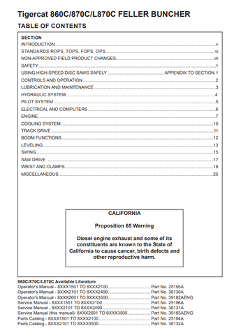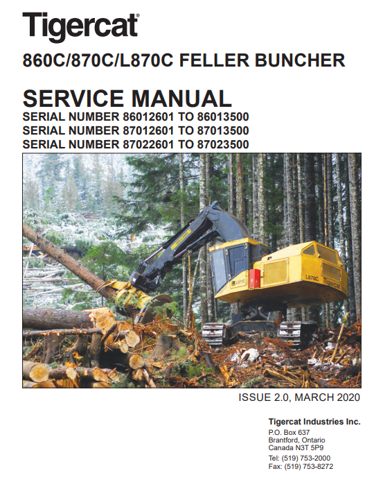 Download Complete Service Repair Manual PDF For Tigercat 870C Feller Buncher | Serial No. (87011501-87013500, 87012601-87013500)