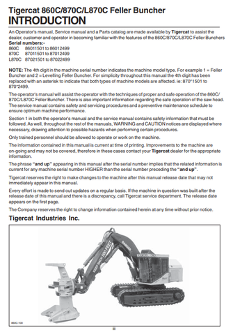 Download Complete Service Repair Manual PDF For Tigercat 870C Feller Buncher | Serial No. (87011501-87013500, 87011501-87012100)