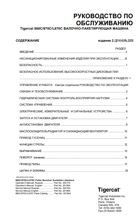 Download Complete Service Repair Manual PDF For Tigercat 870C Feller Buncher | Serial No. (87011501-87013500, 87011501-87012100) - Russian