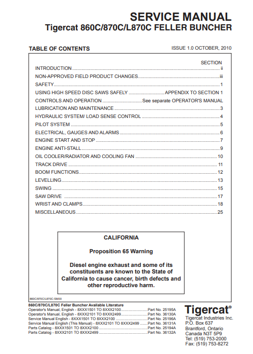 Tigercat 870C Feller Buncher Service Repair Manual (87011501-87013500, 87012101-87012499) - PDF File Download