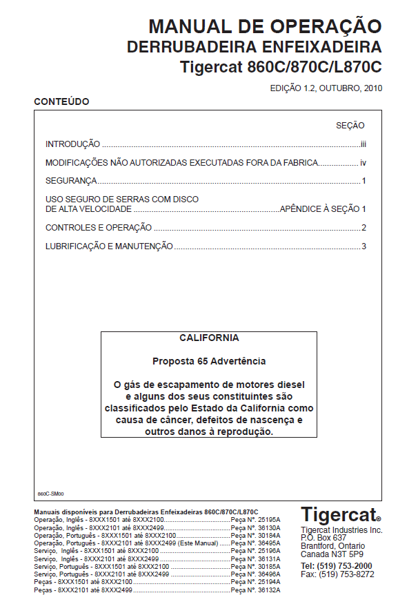 TIGERCAT 870C FELLER BUNCHER OPERATOR/USER MANUAL (87011501-87013500, 87012101-87012499) - PDF FILE DOWNLOAD