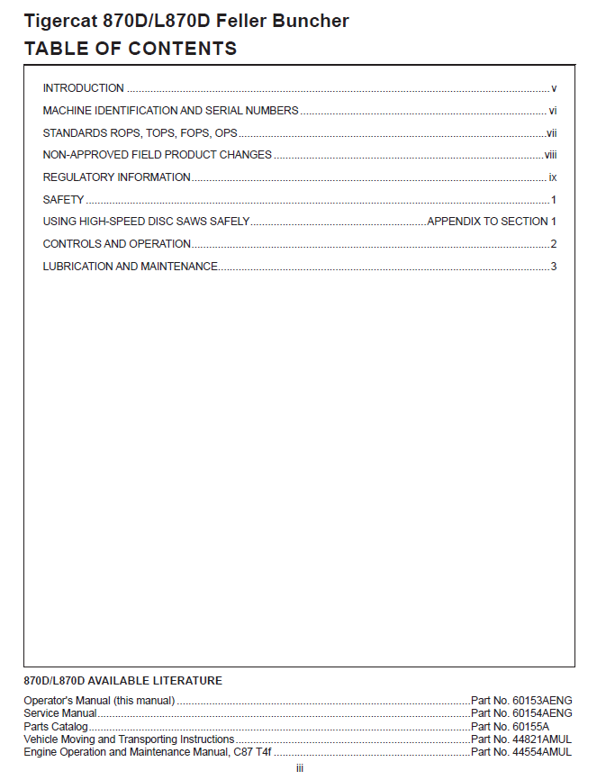 Download Complete Operators/User Manual For Tigercat 870D Feller Buncher | Serial No. (87013501-87015000)