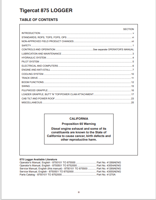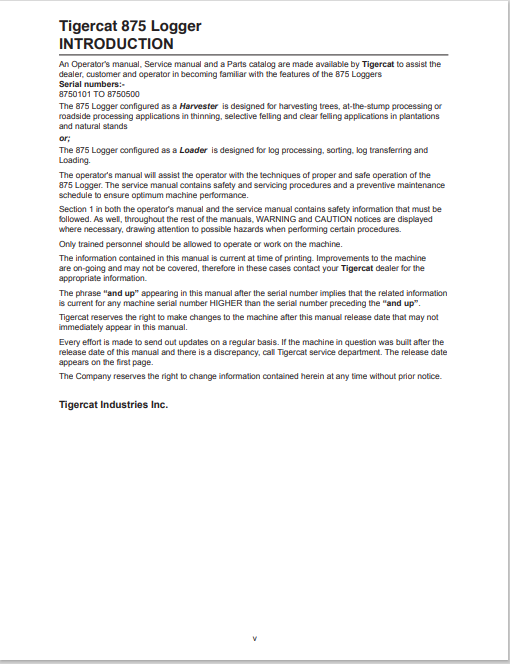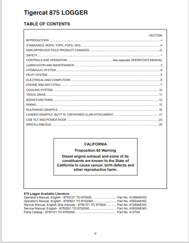 Tigercat 875 Logger Service Manual (8750101 - 8750500) - PDF File Download