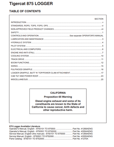 Download Complete Service Repair Manual PDF For Tigercat 875 Logger | Serial No. (8750101-8752000, 8750101-8750500)