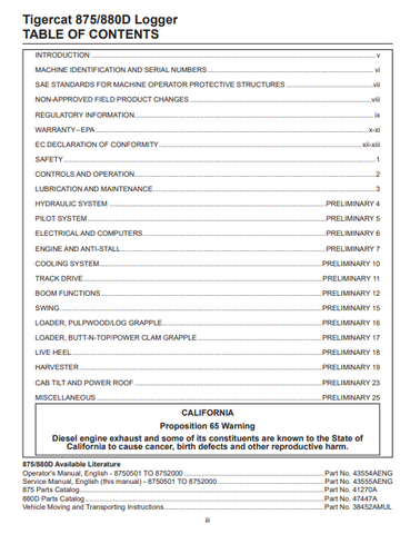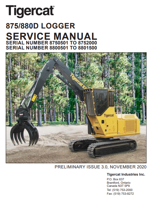 Download Complete Service Repair Manual PDF For Tigercat 875 Logger | Serial No. (8750101-8752000, 8750501-8752000)