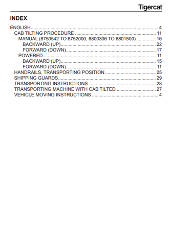 Download Complete Moving Instruction Manual PDF For Tigercat 880 Logger | Serial No. (8800101-8800500)