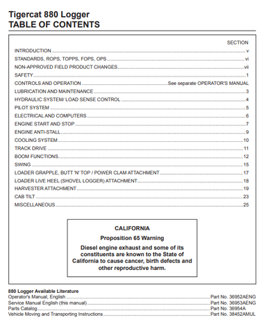 Download Complete Service Repair Manual PDF For Tigercat 880 Logger | Serial No. (8800101-8800500)