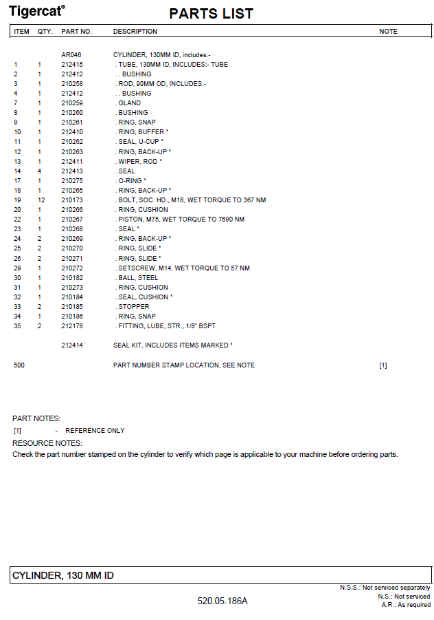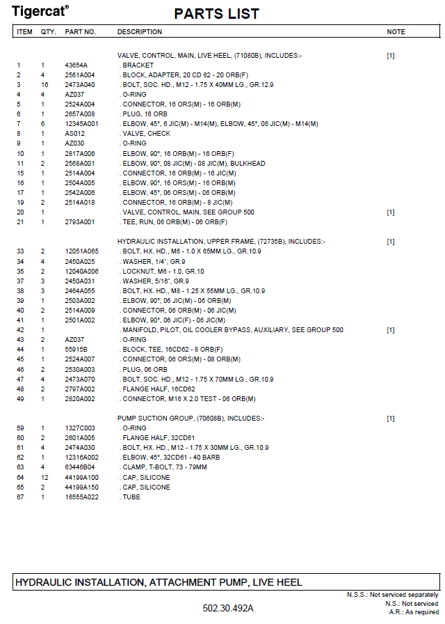 TIGERCAT 880D PARTS CATALOGUE MANUAL