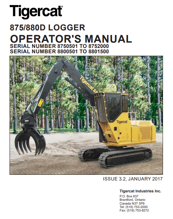 Download Complete Operator/User Manual PDF For Tigercat 880D Logger | Serial No. (8800501-8801500)