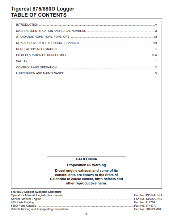 Tigercat 880D Logger Operator/User Manual (8800501-8801500) - PDF File Download