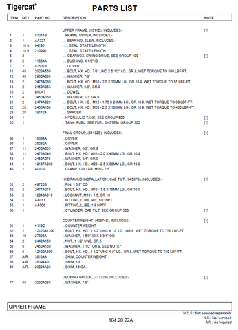Download Complete Parts Catalogue Manual For Tigercat 890 Logger | Serial No. - 8900101-8900500