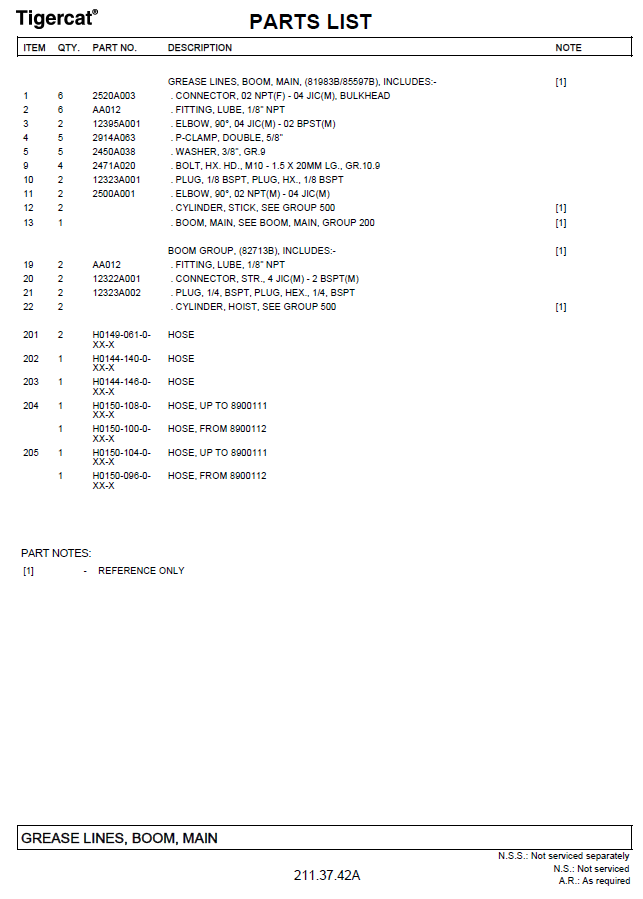 TIGERCAT 890 PARTS CATALOGUE MANUAL