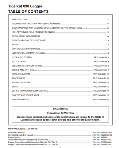 Download Complete Service Repair Manual PDF For Tigercat 890 Logger | Serial No. (8900101-8900500)