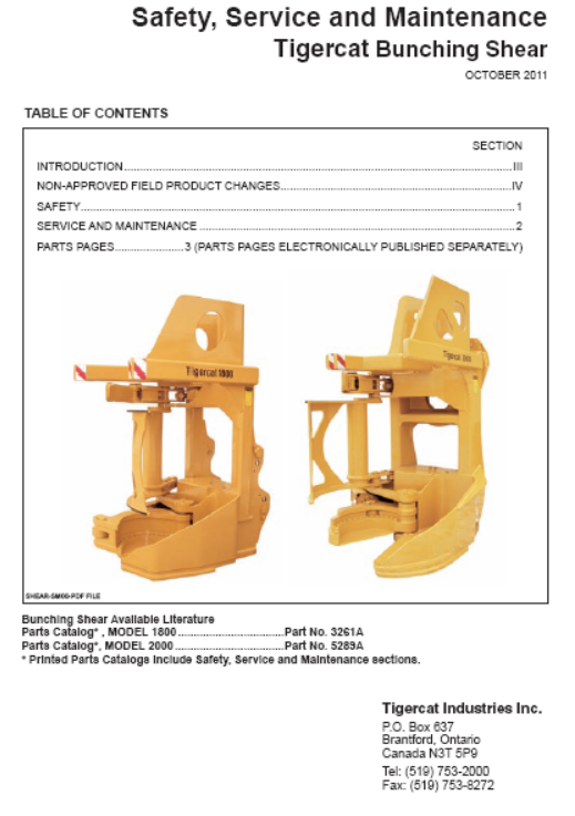 Download Complete Safety, Service & Maintenance Manual PDF For Tigercat Bunching Shear