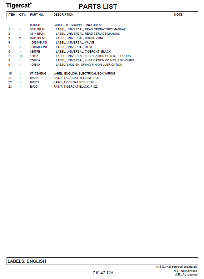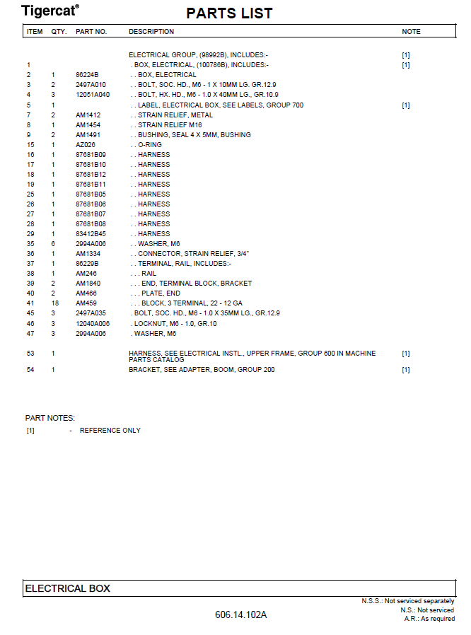 TIGERCAT PARTS CATALOGUE MANUAL