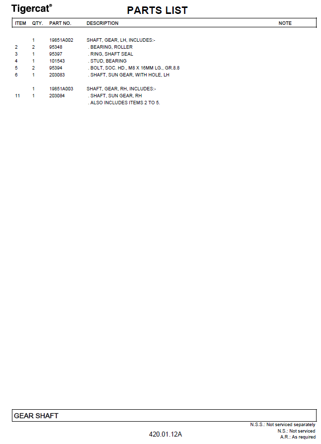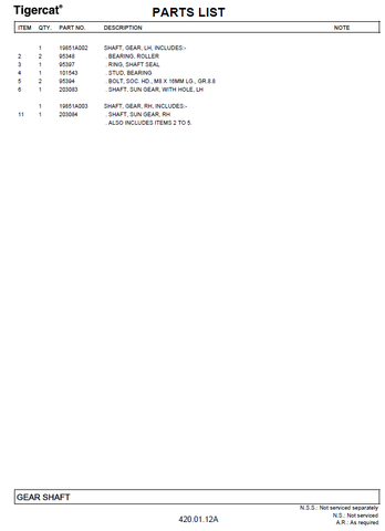 TIGERCAT C640C PARTS CATALOGUE MANUAL