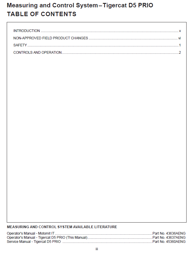 Download Complete Operator Manual For Tigercat Dasa D5 TH570 Harvesting Head | Serial No. (5700101-5701000)