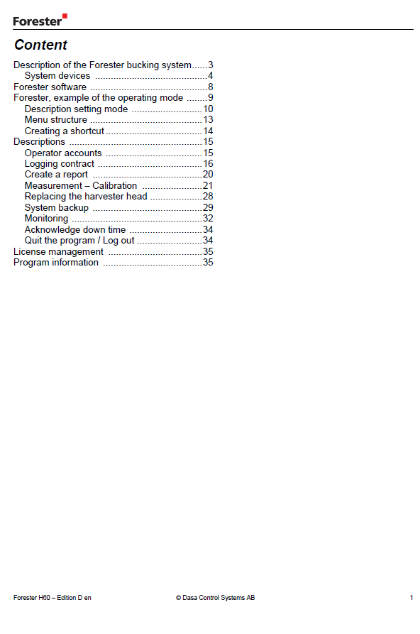 TIGERCAT DASA D7 TH534 HARVESTING HEAD PRIORITY MANUAL