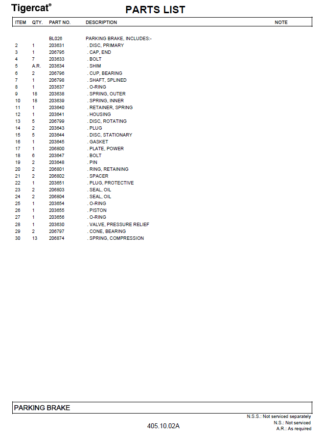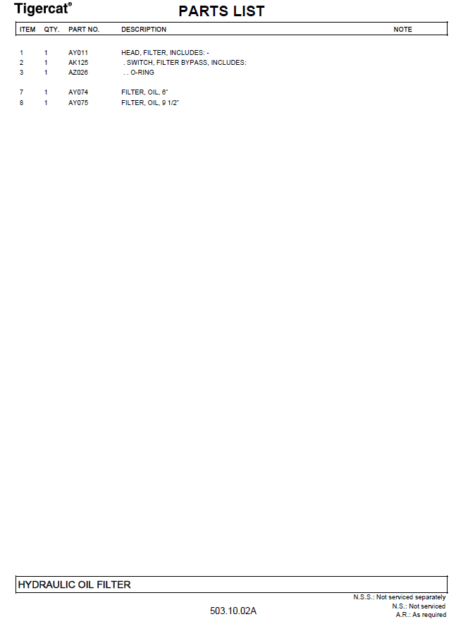 TIGERCAT F610C PARTS CATALOGUE MANUAL