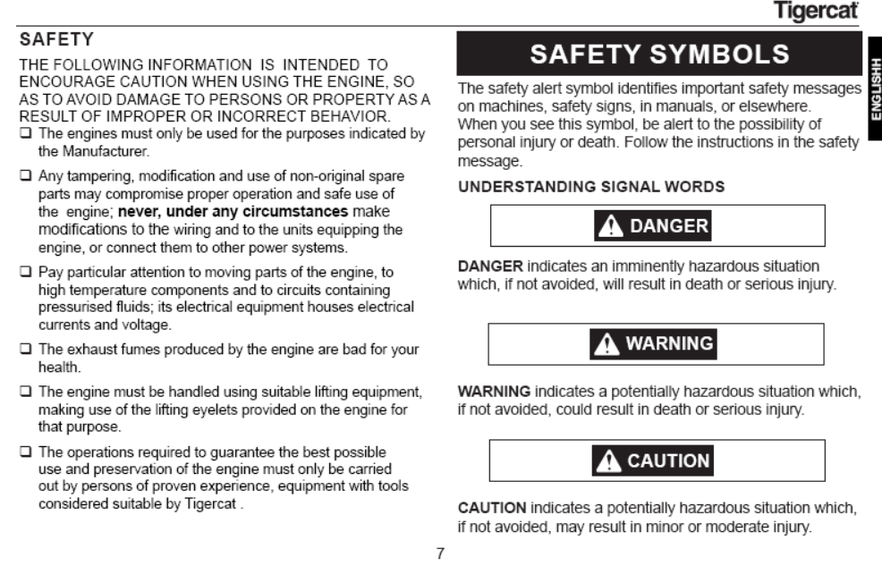 TIGERCAT FPT N45, N67 T4F ENGINE OPERATION MANUAL
