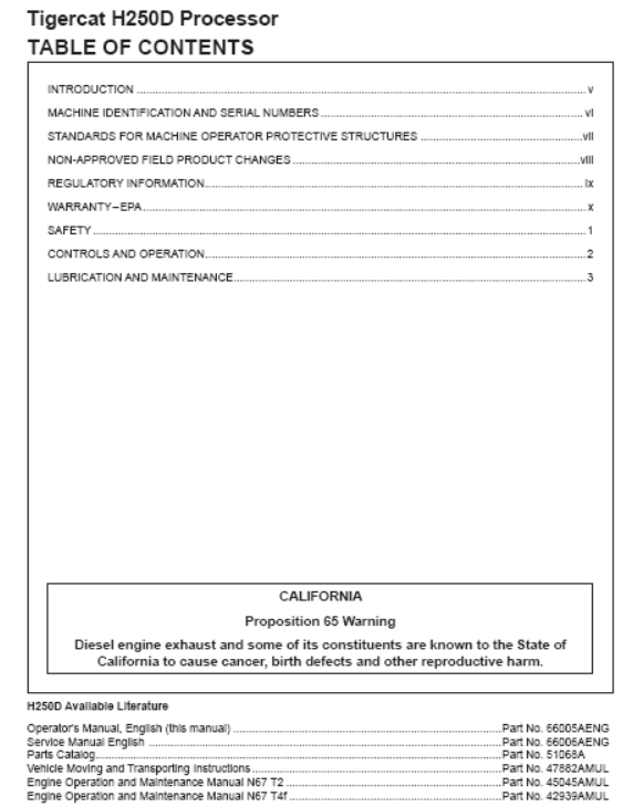 Download Complete Operators/User Manual PDF For Tigercat H250D Processor | Serial No. (250H3001-250H3500)