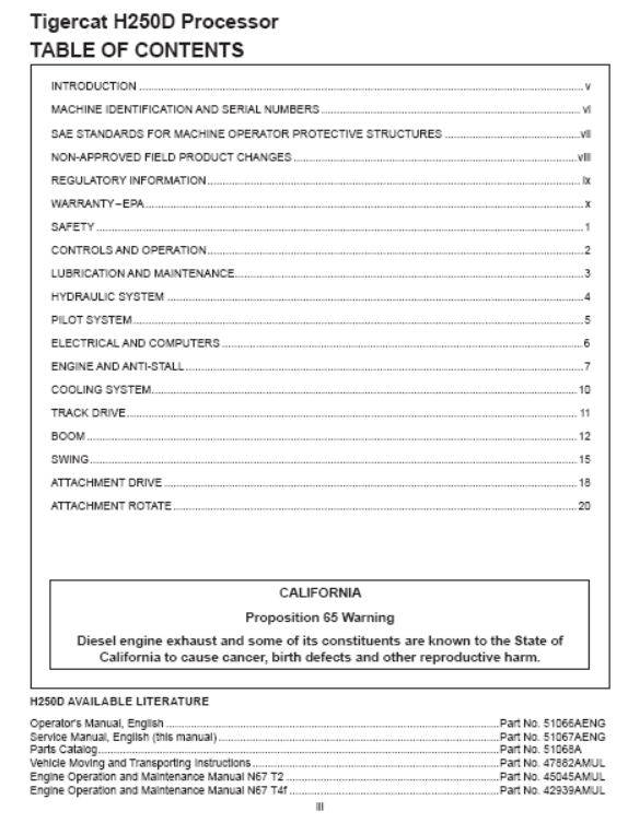 Download Complete Service Repair Manual PDF For Tigercat H250D Processor | Serial No. (250H2201-250H3000)