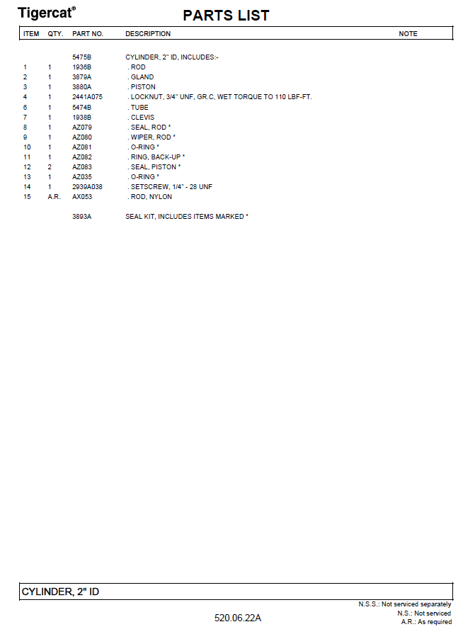 TIGERCAT H822E PARTS CATALOGUE MANUAL
