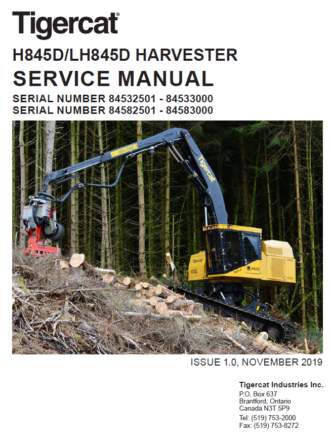 Download Complete Service Repair Manual For Tigercat H845D Harvester | Serial No. (84532501-8453000)