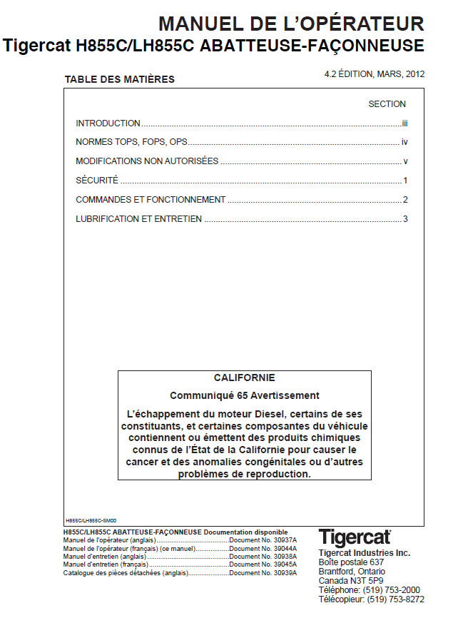TIGERCAT H855C HARVESTER OPERATOR/USER MANUAL (85530101-85532000, 85530101-85531000) - PDF FILE DOWNLOAD