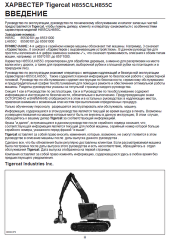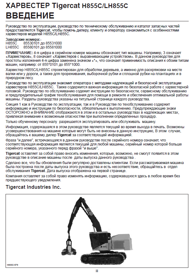 Download Complete Operator/User Manual For Tigercat H855C Harvester | Serial No. (85530101-85532000, 85530101-85531000)