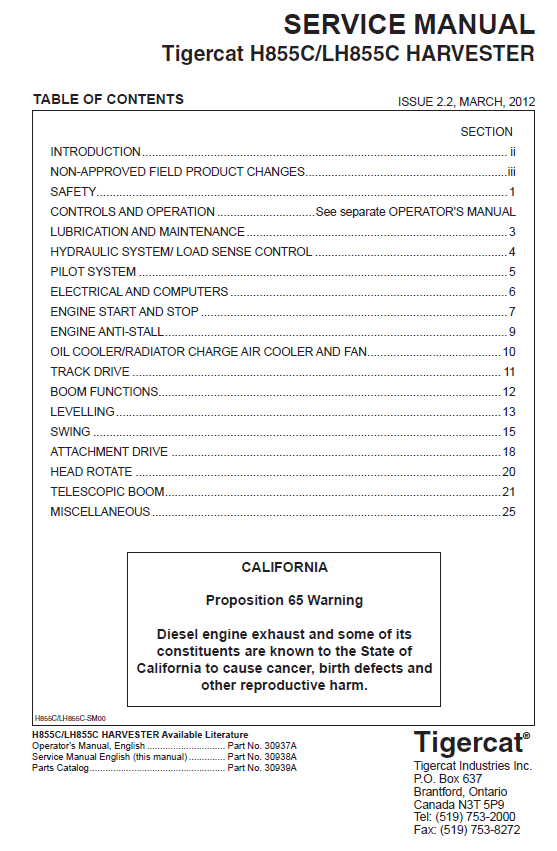 TIGERCAT H855C HARVESTER SERVICE REPAIR MANUAL (85530101-85532000, 85530101-85531000) - PDF FILE DOWNLOAD