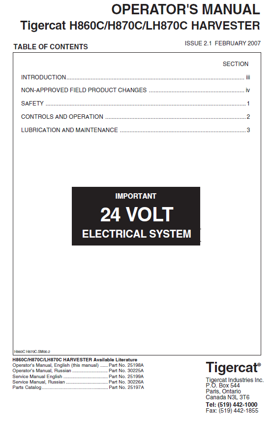 TIGERCAT H860C HARVESTER OPERATOR/USER MANUAL (86031501-86032499) - PDF FILE DOWNLOAD