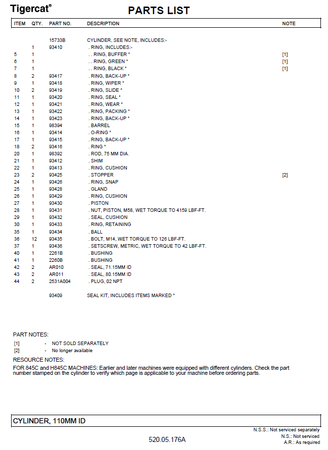 TIGERCAT H860D PARTS CATALOGUE MANUAL