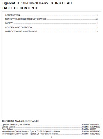 Get up-to-date information and operating instructions for Tigercat HC570 harvesting head with this PDF file download of the official operator/user manual. This comprehensive guide contains technical specifications, safety protocols, and operational instructions to maximize the effectiveness and efficiency of your Tigercat harvester.