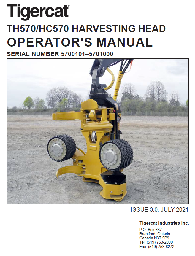 Download Complete Operator/User Manual For Tigercat HC570 Harvesting Head | Serial No. (5700101-5701000)