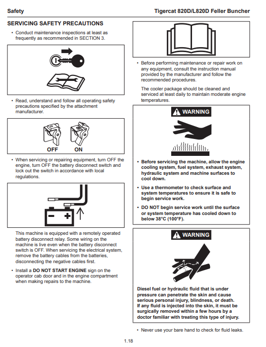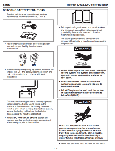 Tigercat L820D Feller Buncher Operator/User Manual (82021001-82022000) - PDF File Download
