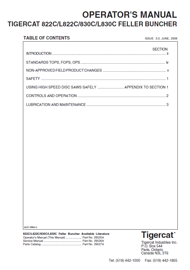 TIGERCAT L822C BUNCHER OPERATOR/USER MANUAL