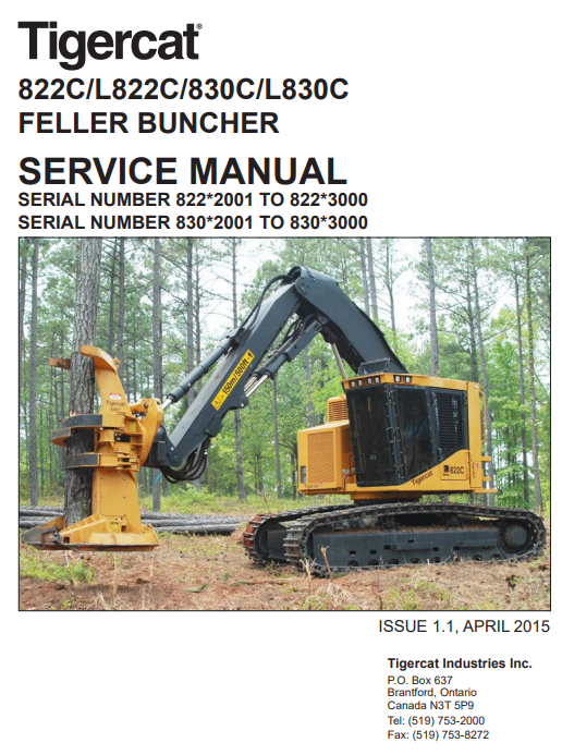 Download Complete Service Repair Manual PDF For Tigercat L822C Feller Buncher | Serial No. (82221001-82223000, 82222001-82223000)
