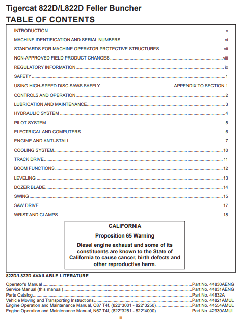 Download Complete Service Repair Manual PDF For Tigercat L822D Feller Buncher | Serial No. (82223001-82224000)