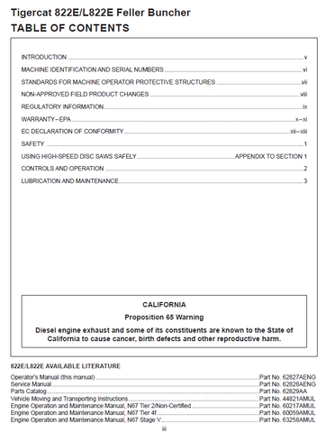 Download Complete Operator/User Manual For Tigercat L822E Feller Buncher | Serial No. (82224001-82225000)