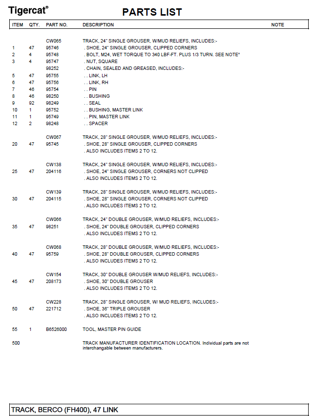 TIGERCAT L830 PARTS CATALOGUE MANUAL