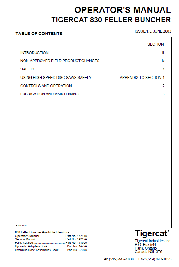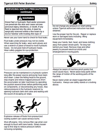 TIGERCAT L830 FELLER BUNCHER OPERATOR/USER MANUAL (830T0101-83020999, 830T0101-830T0499) - PDF FILE DOWNLOAD
